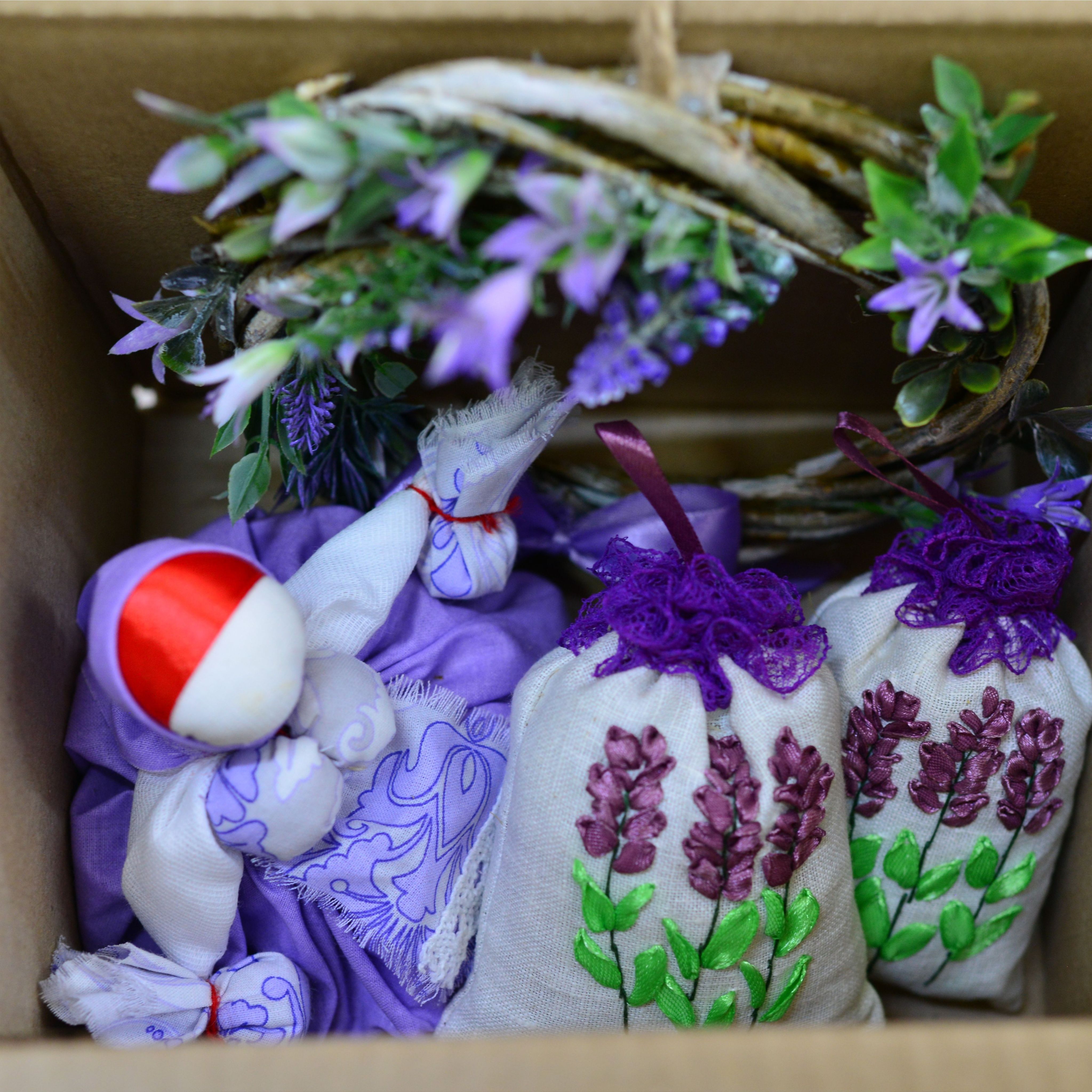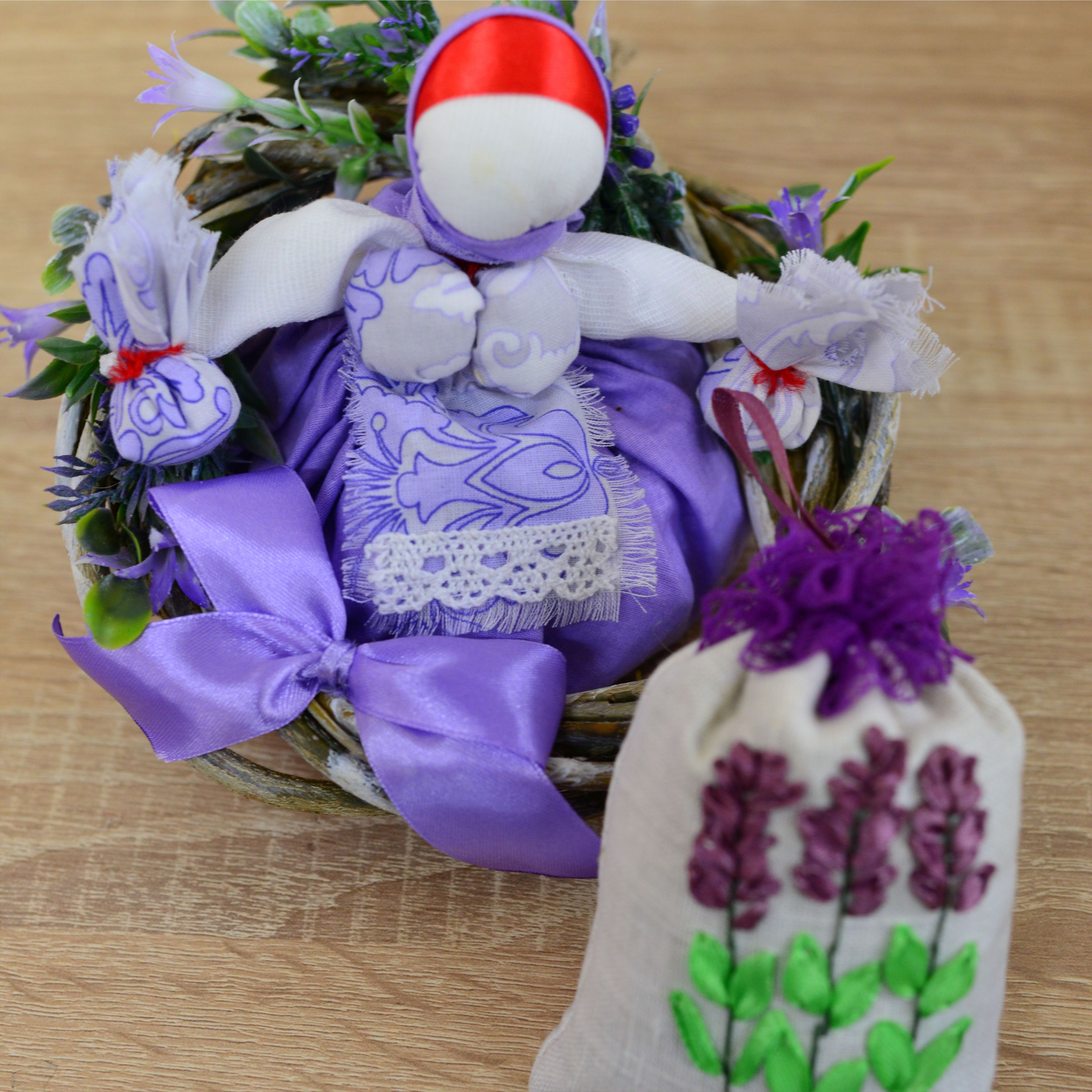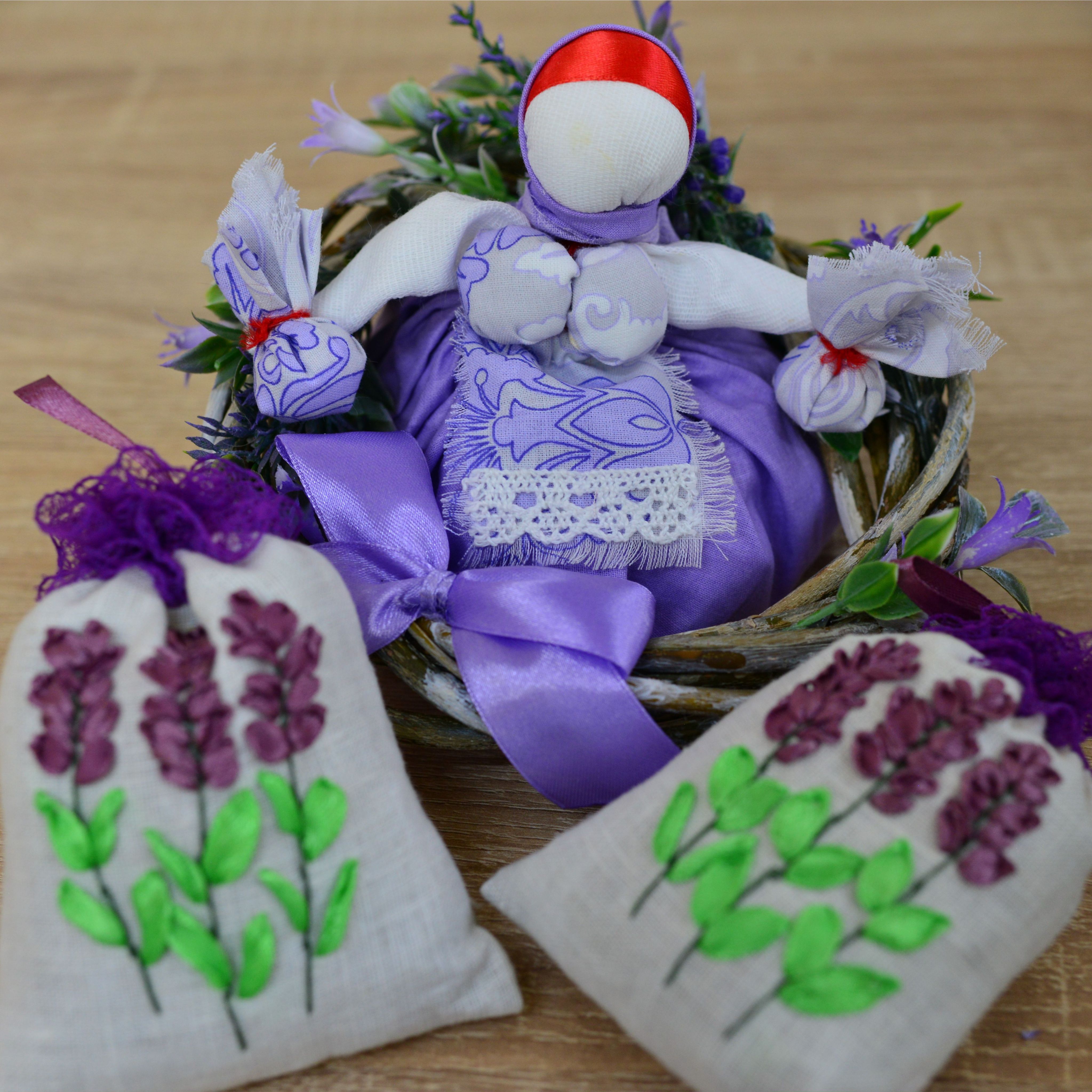 Окунитесь в мир природной гармонии с нашим прекрасным подарочным набором "Аромат лаванды". Этот набор сочетает в себе элегантность и нежность, чтобы создать идеальное приключение для всех ваших чувств. Лавандовое саше – это непревзойденный символ спокойствия и релаксации. Оно сделано вручную из натуральных лавандовых цветков, стеблей и листьев, которые внесут в ваш дом тонизирующий аромат и помогут снять стресс после долгого дня. Просто положите саше в своей гардеробной комнате, ящике или автомобиле, и наслаждайтесь непревзойденной свежестью и умиротворением на протяжении долгого времени. Венок с лавандой создаст уют и атмосферу тепла. Идеально подходит для создания привлекательной атмосферы в вашем доме. Кукла-травница – это обаятельный символ природной мудрости и внутренней силы. Изящно исполненная в ручную, она является идеальным дополнением для вашей коллекции или прекрасным подарком для ваших близких. Позвольте этой кукле напомнить вам о важности подключения к природе и поиске гармонии внутри себя. Насладитесь ароматом и красотой с нашим подарочным набором "Аромат лаванды". Пусть он станет отправной точкой для открытия новых горизонтов спокойствия и благополучия в вашей жизни. Состав: 100% цветки, листья и стебли лаванды, лен, хлопок, атласные ленты, лоза.